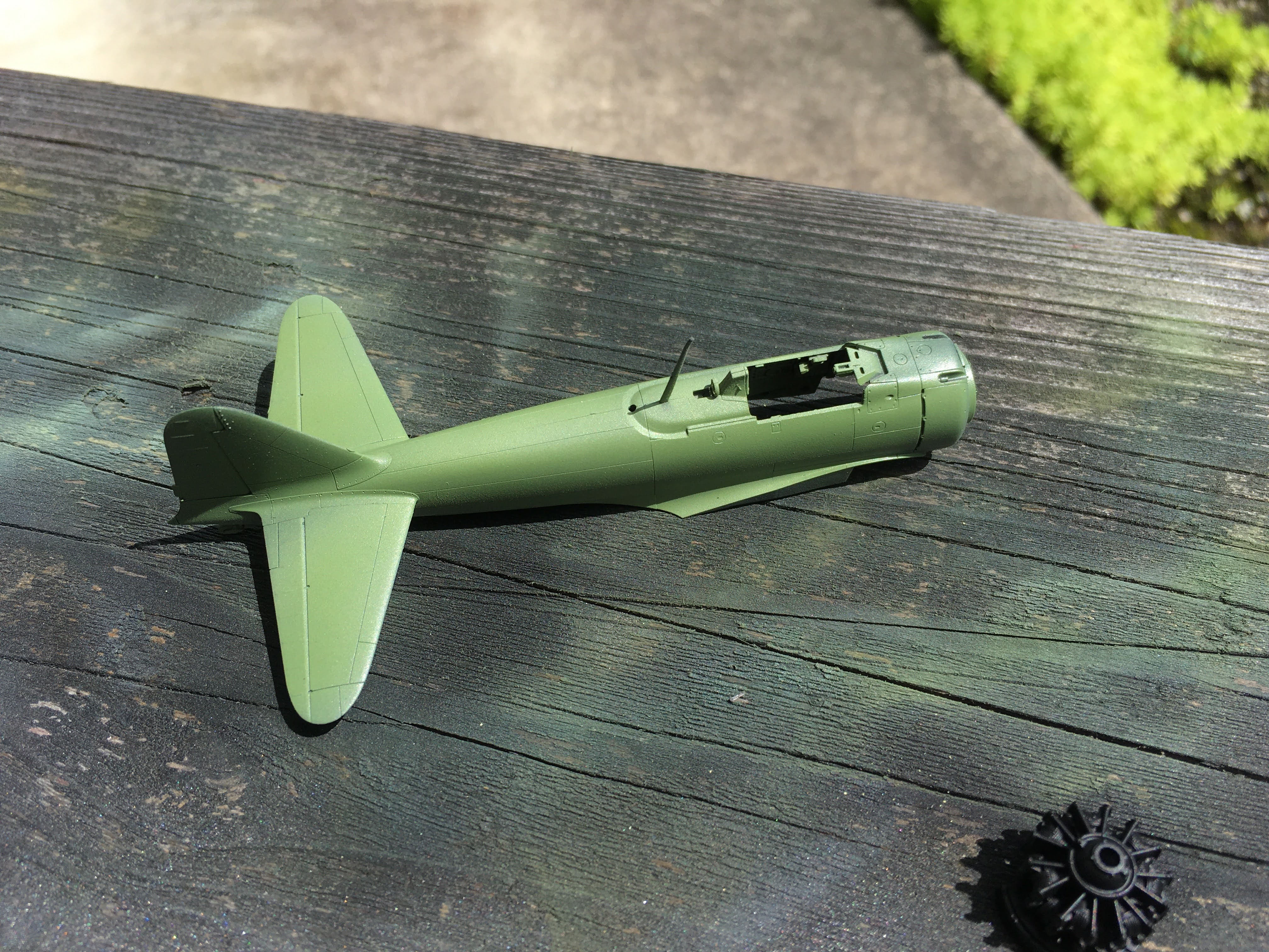 15日に、少しだけ晴れ間が出たので塗装。黒サフ→下面を白サフで薄く塗装。