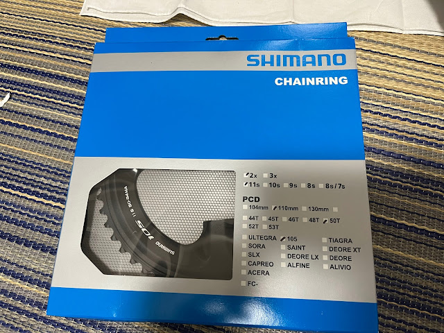 昨年末にチェーンを交換し、年初にリアスプロケもスマートローラーと同時に購入した新品にしたのですが、フロントのチェーンリングがコロナによる世界的品不足の影響?か入手できず、そのままになっていました。
