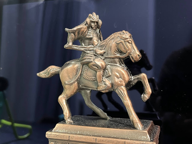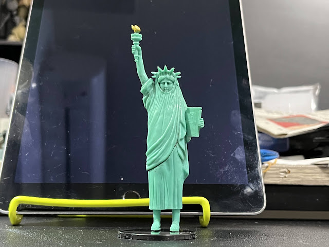 皇居の楠木正成像の前のお土産屋さんで購入した像と、平和島のドン・キホーテのガチャガチャで購入した「自由すぎる女神」です。